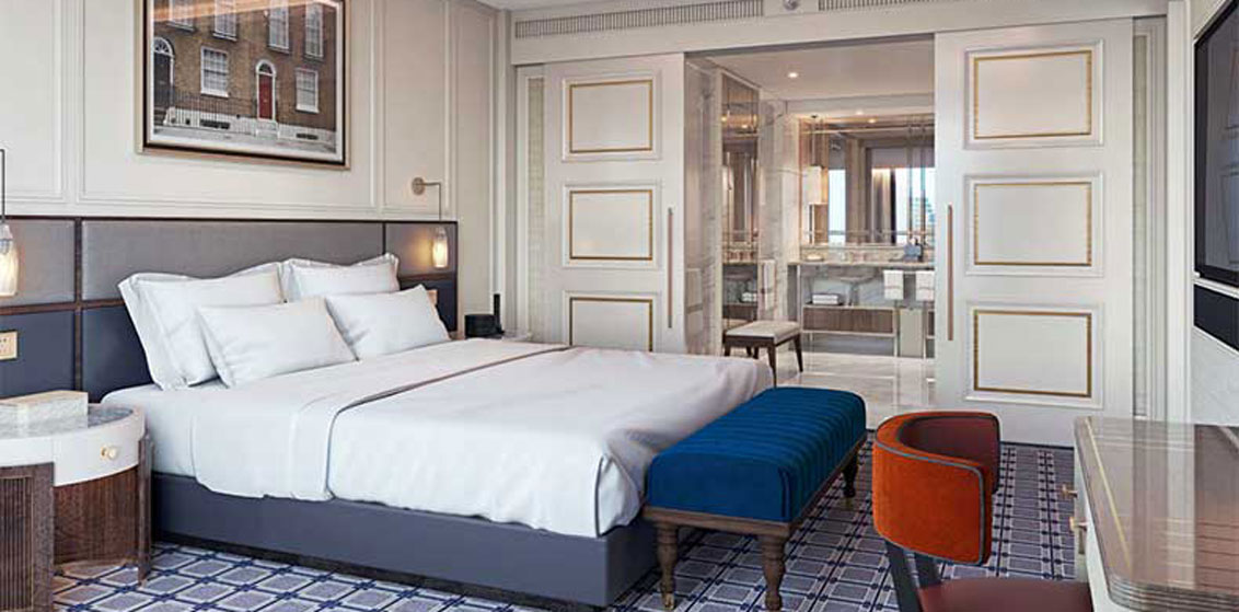 The hotel is slated to feature 2,405 rooms and suites, each embodying the grandeur of Georgian architecture. Each bedroom will boast traditional panelling, elegant linear headboards, and marble bathrooms that exude timeless sophistication, while each suite will be decorated with art and accessories inspired by London’s Mayfair district.
