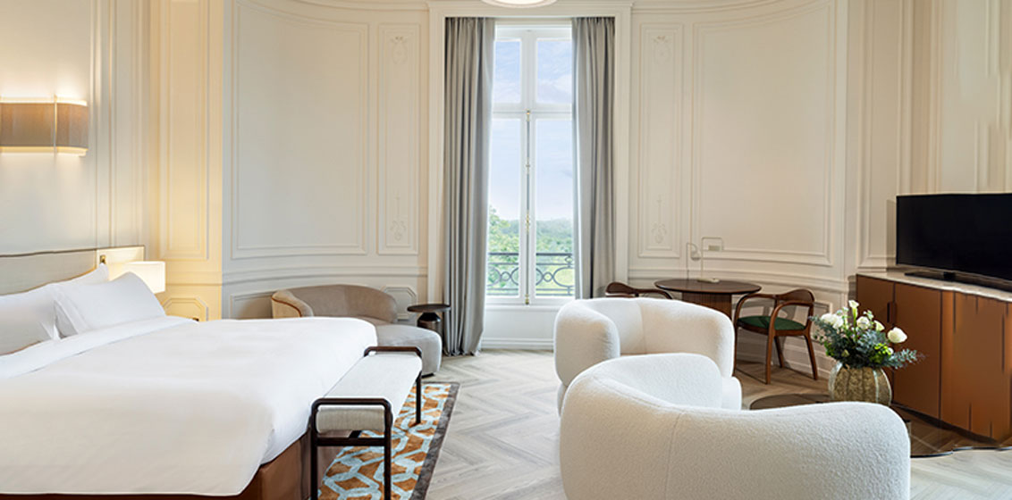The hotel’s 109 guest rooms and suites have been redesigned to instil a sense of calm and elegance, with interiors inspired by the beauty of the hotel’s biophilic surroundings, the region’s equestrian traditions, and the intricacies of Chantilly lace. Each room is flooded with natural light from expansive windows, balconies and terraces which overlook the luscious surroundings.