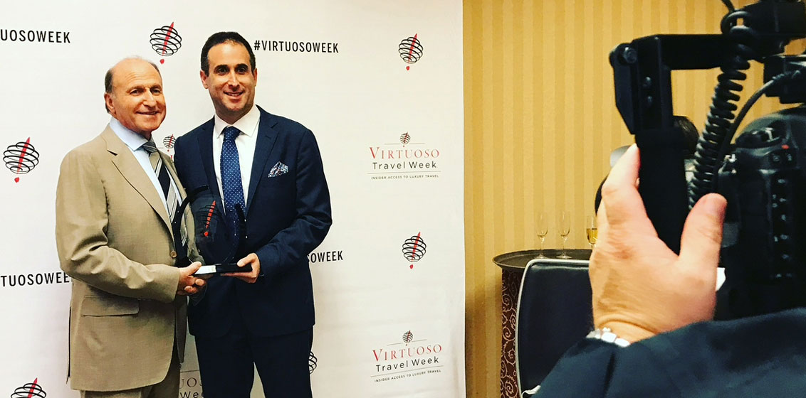 Lead image: Pictured in 2016, from left: Anthony Goldman, Virtuoso’s CEO/Chairman Matthew Upchurch and Executive Vice President, David Kolner, with David Goldman, Co Managing Director, Goldman Group.