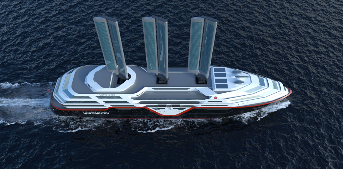 Hurtigruten has released its updated plans for its Sea Zero project, the zero-emission ship scheduled to debut in 2030, in its research and development phase. With the help of large batteries, sails, and other innovative solutions, the ship will be able to sail entirely emission-free during normal operation, while energy consumption could be reduced by 40-50%.
