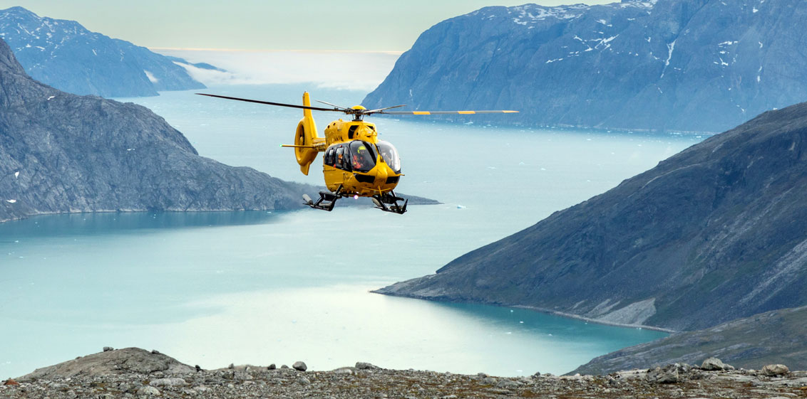 Guests will also explore Blomsterbugten, or the Bay of Flowers, with its colourful fall foliage and unique flora, and take in the rugged beauty of Bjørne Islands, home to icy blue icebergs and notable archaeological sites. They’ll sail across the Denmark Straight—not once but twice— and soar above parts of Greenland on one of Ultramarine’s twin-engine helicopters.