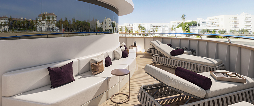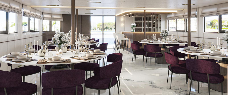 The ship will feature 18 ensuite cabins measuring up to 15 sqm, with a restaurant and bar area on the upper deck. The outside of the ship will have a sundeck and covered outdoor lounge area with sofas, sun loungers and a jacuzzi.