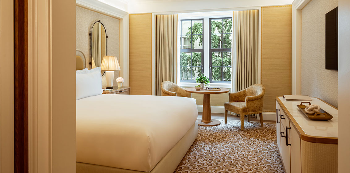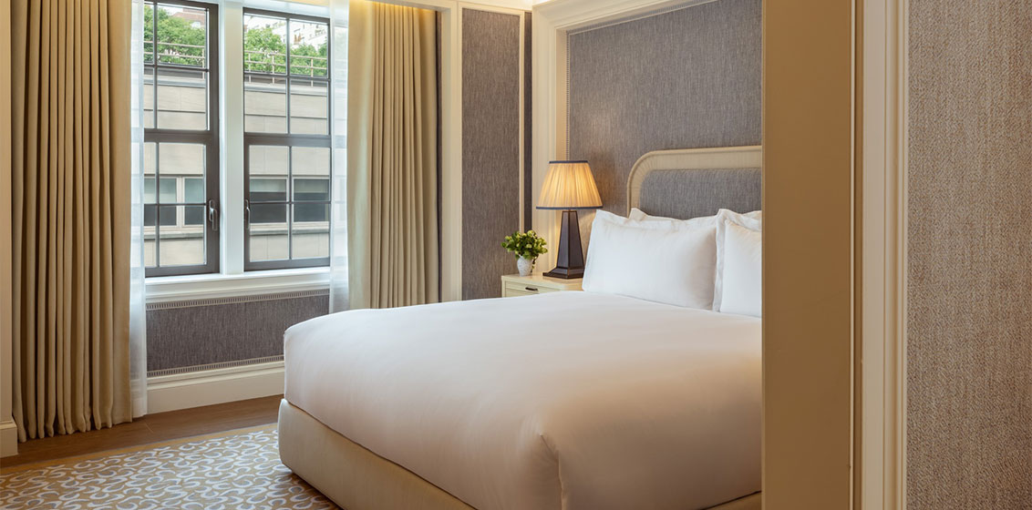 The hotel’s suites are inspired by the bridges of Central Park. They include the Bethesda Grandeur Suite, Pine Bank Bridge Suite, Greywacke Heritage Suite, and The Surrey Suite, featuring design elements that pay homage to their namesakes. Crown moldings reflect each bridge’s architectural style, while illustrations of the bridges are found within each suite’s grand armoire. These spacious accommodations feature elegant living spaces, luxurious beds, and opulent bathrooms. Guests staying in these suites may opt for complimentary, dedicated butler service for a seamless and highly personalised stay.