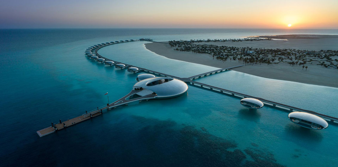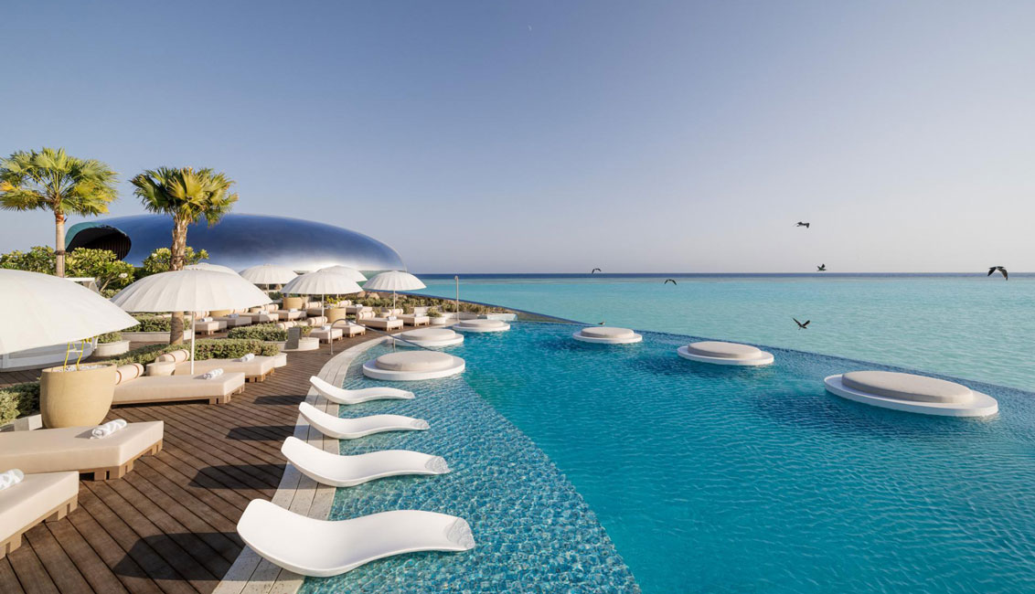 Through its leading approach to sustainability, Shebara seamlessly combines its unique architecture – take one-of a kind, stainless-steel orbs, which fade into the horizon as the surface refracts the light – with the island’s natural environment. Home to its own solar farm and an array of integrated utilities, the resort represents everything that Red Sea Global stands for as a responsible developer.