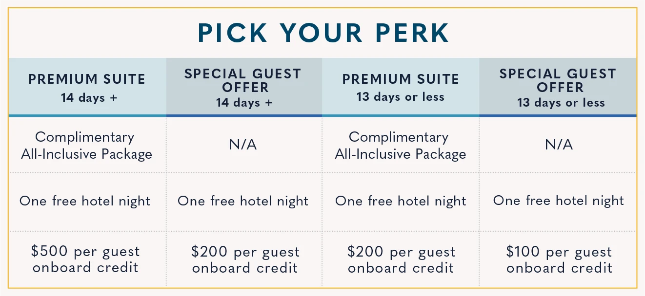 “Windstar’s ‘Pick Your Perk’ offer is one of our most popular promotions featuring significant, personalised savings,” shared Janet Bava, Chief Commercial Officer for Windstar.