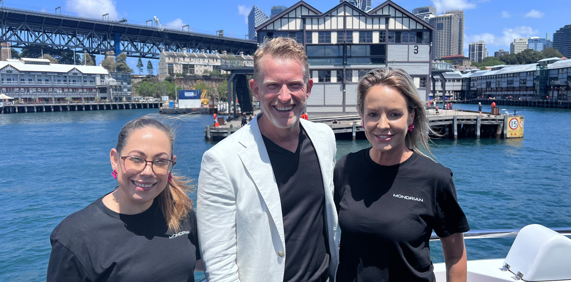 Lead image: Pictured on Sydney Harbour on Wednesday are Mondrian Gold Coast’s Brad Mercer, General Manager, with Kelly Brady (left), Director of Revenue and Megan Pechey, Director of Sales.