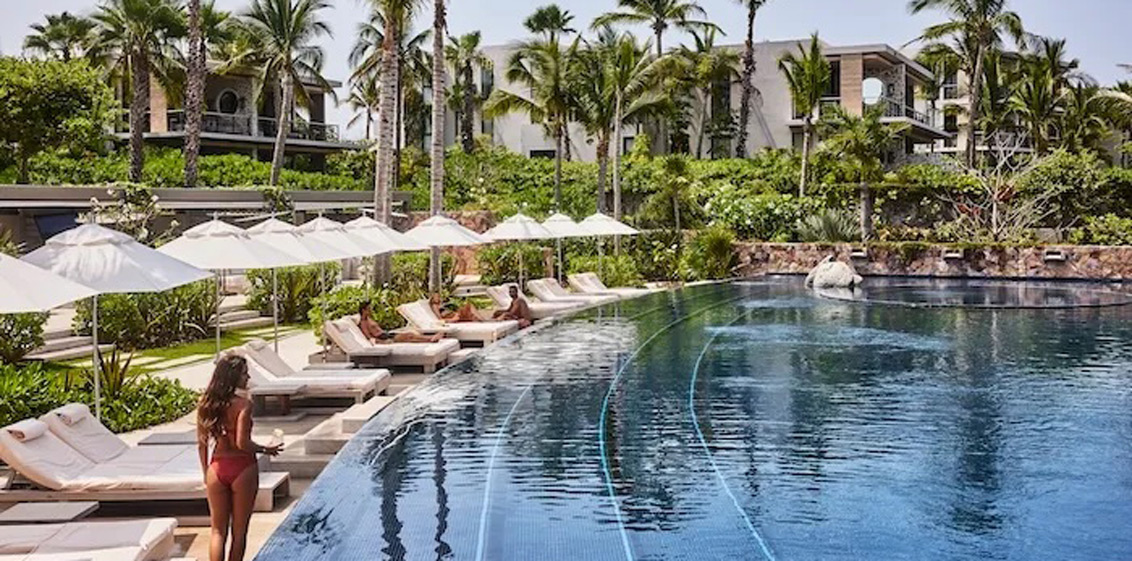 The resort itself will be a lushly landscaped oasis with a series of oversized, natural-edge swimming pools will cascade lagoon-like to the beachfront via ocean-view cabanas.