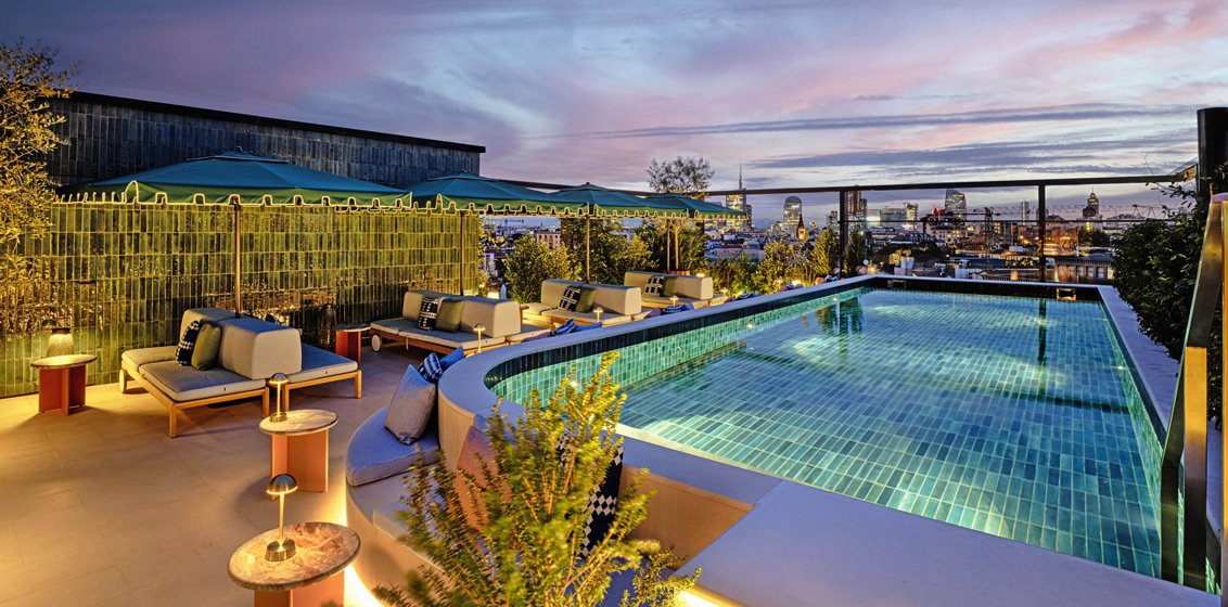 The hotel combines its distinctive colourful and sophisticated design with the rigor of Rationalist architecture. The timeless elegance of the interior design creates a strong link with the ‘Milanese’ style, establishing a seamless connection between the interior and exterior of the hotel.