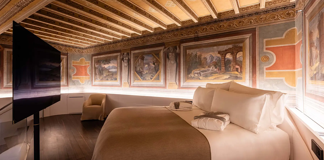 Set within a historic 16th-century palace, the five-star 74-room boutique hotel fuses futuristic elements with the historic surroundings.