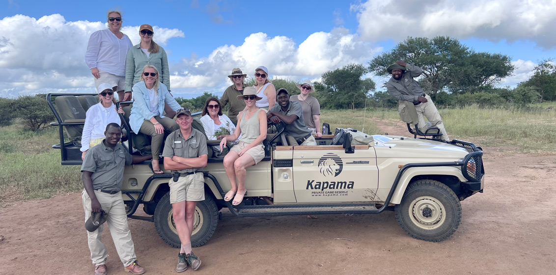 Over the first three days at Kapama, the group were privileged to spot the ‘Big 5’ (lion, leopard, rhino, elephant and water buffalo) within the first day and a half. The game didn’t stop there, with plenty of giraffe, antelope, zebra, warthog, birdlife, hippo, hyena and even the highly elusive wild dog during their time exploring the far reaches of the 13,000 hectare private reserve.