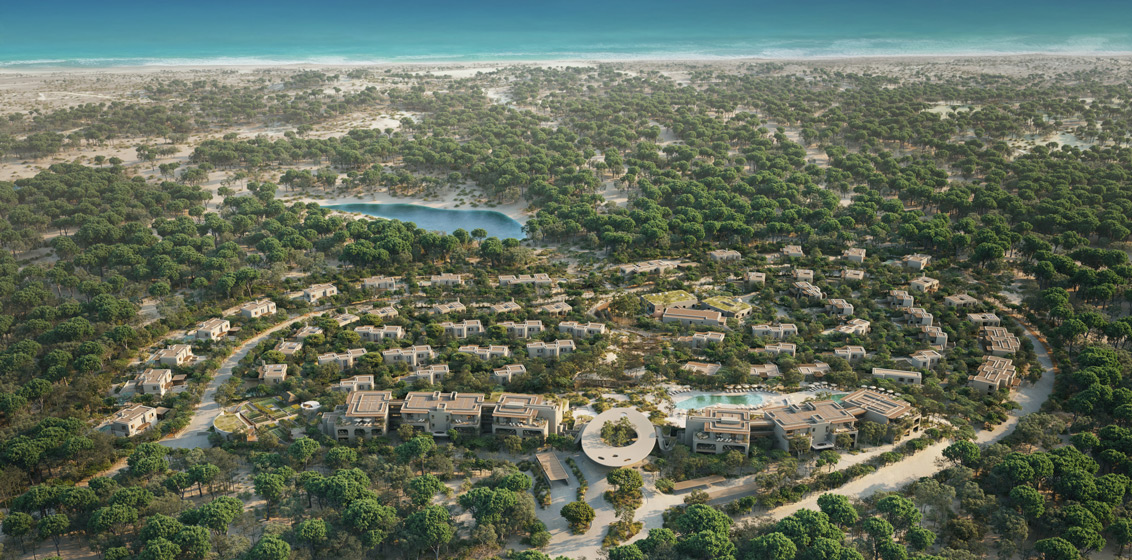 Slated to open in 2028, Six Senses Comporta will comprise a 70-hotel key and branded residences as part of the Pinheirinho estate, a 400-hectare estate that was previously privately owned and accessed by invitation only. Much of the site is a protected nature reserve of pinewood forest. Under development plans, the site is being brought to life in accordance with strict aesthetic and sustainability guidelines.