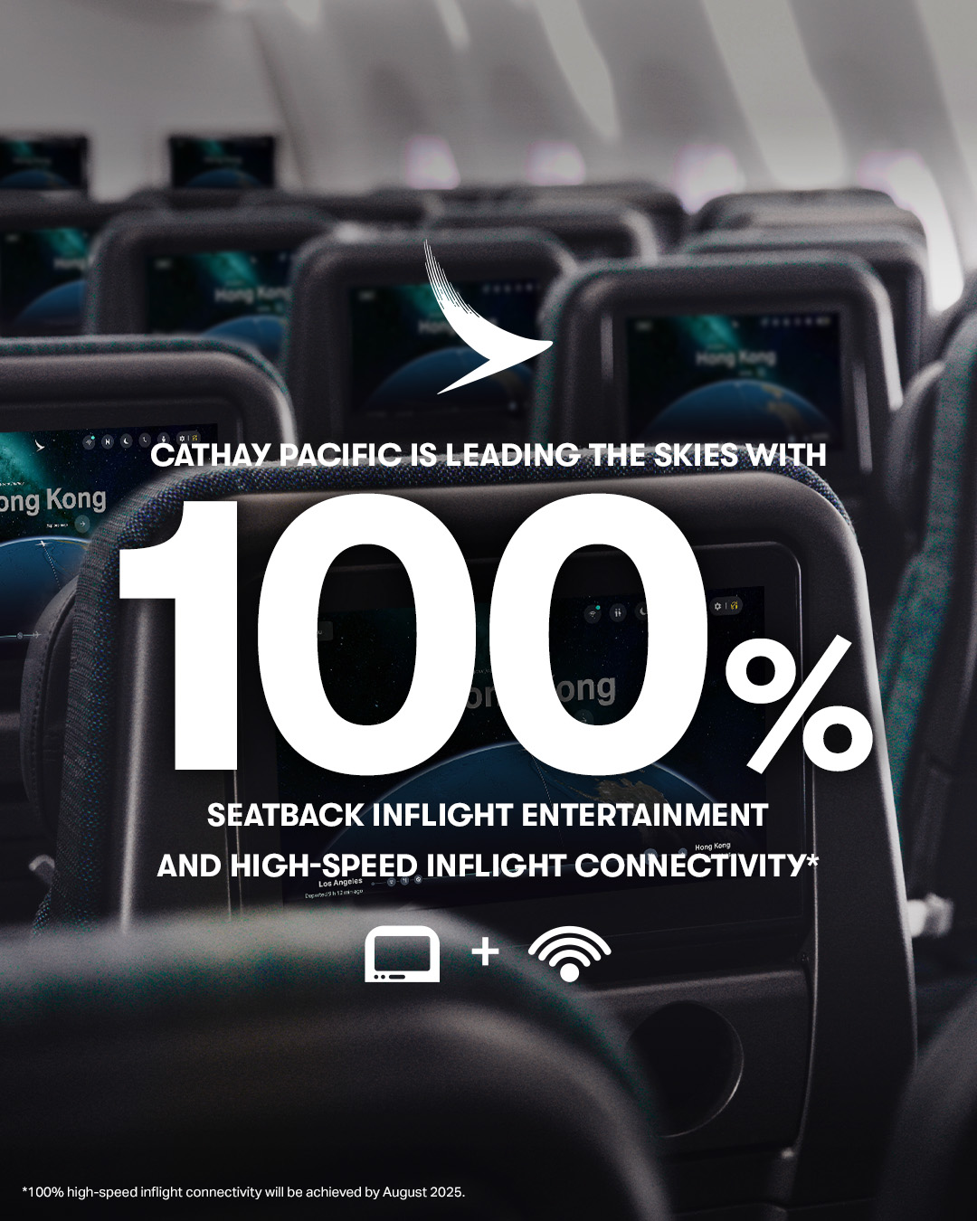 Effective August 2025, Cathay Pacific will be one of the very few airlines to offer both 100% seatback inflight entertainment and 100% high-speed inflight connectivity across its fleet, setting a new standard for premium air travel.