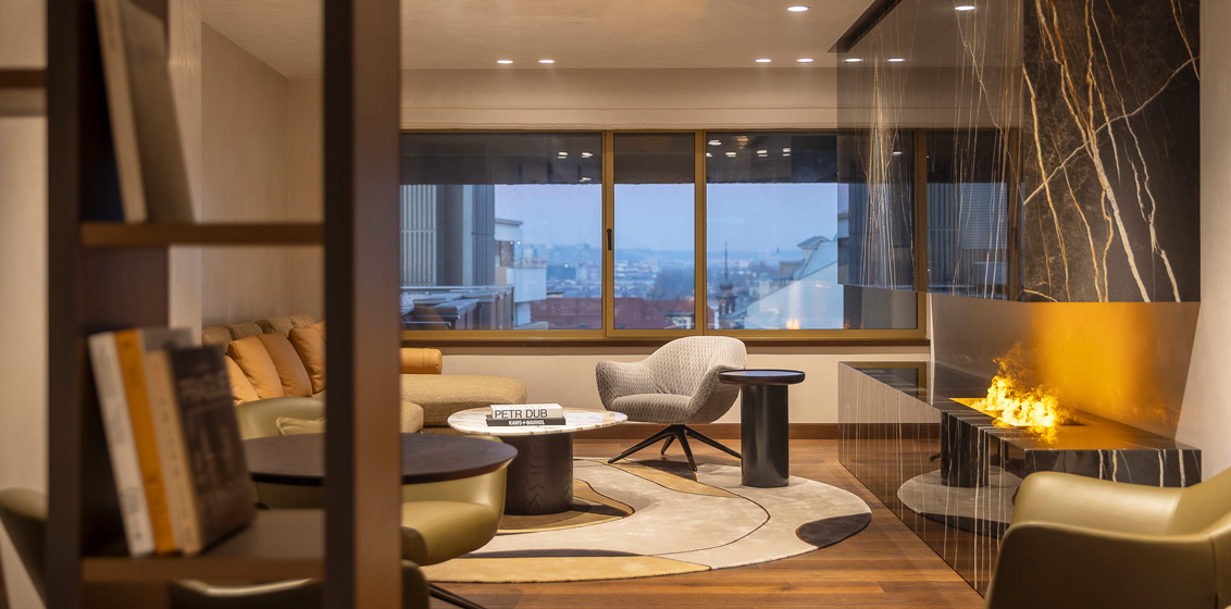 The hotel features 320 elegant rooms, suites, and serviced residences. Drawing inspiration from the building’s original architecture, the interiors seamlessly integrate traditional Czech glass artistry into structural elements, enhancing room partitions and spatial lighting that create a distinctive, refined touch.
