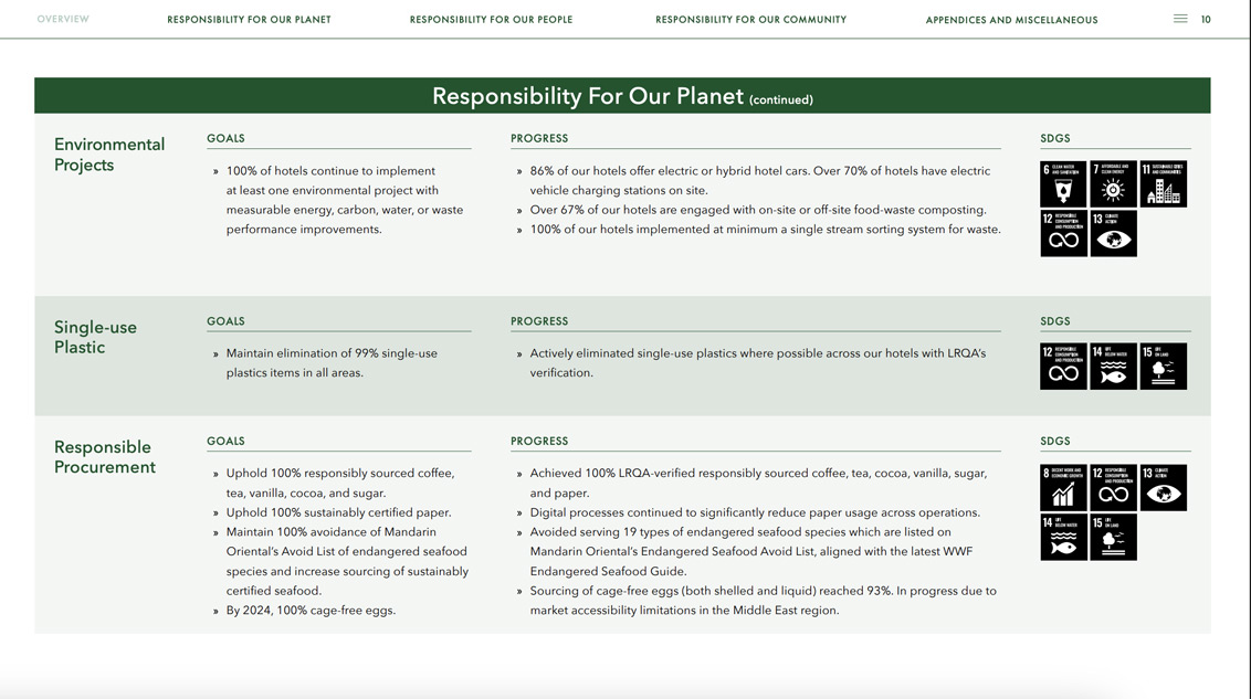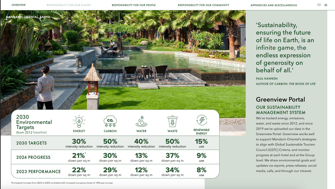 Mandarin Oriental‘s 14th annual Sustainability Report has been released, with the 2024 report reflecting progress across all environmental and social pillars.