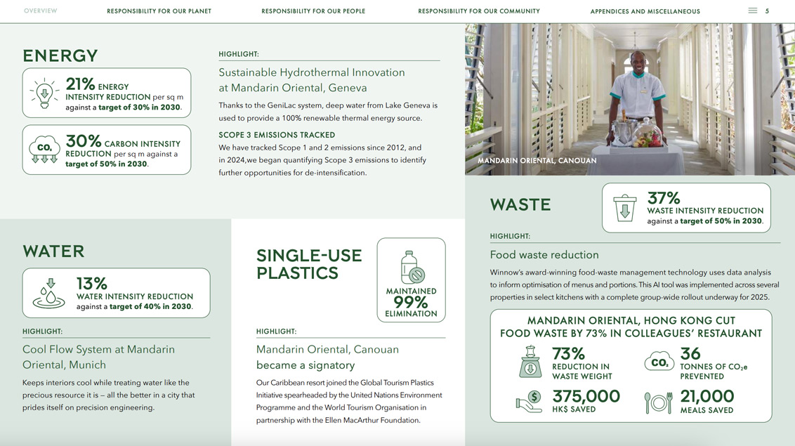 The report also highlighted the Group’s focus on people. All colleagues completed training in inclusive workplace practices, while 132 earned certification as mental health first aiders. A new initiative, launching in 2025, will support colleague-led Resource Groups, beginning with Women in Mandarin Oriental, to enhance visibility, advocacy and connection.