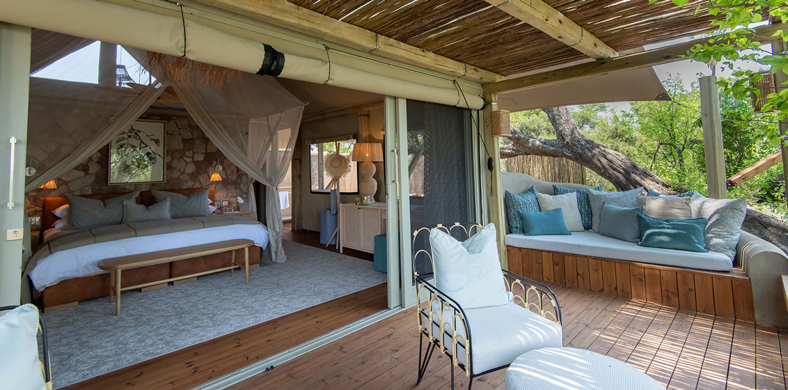 Each suite has a shaded, private veranda area and en-suite bathroom facilities, including an indoor shower, separate toilet and double basins. The highlight of the suites is the outdoor bathrooms with a beautiful bathtub and outdoor shower. Decking in front of the tent leads to views of the Zambezi River’s calming and peaceful flowing waters.
