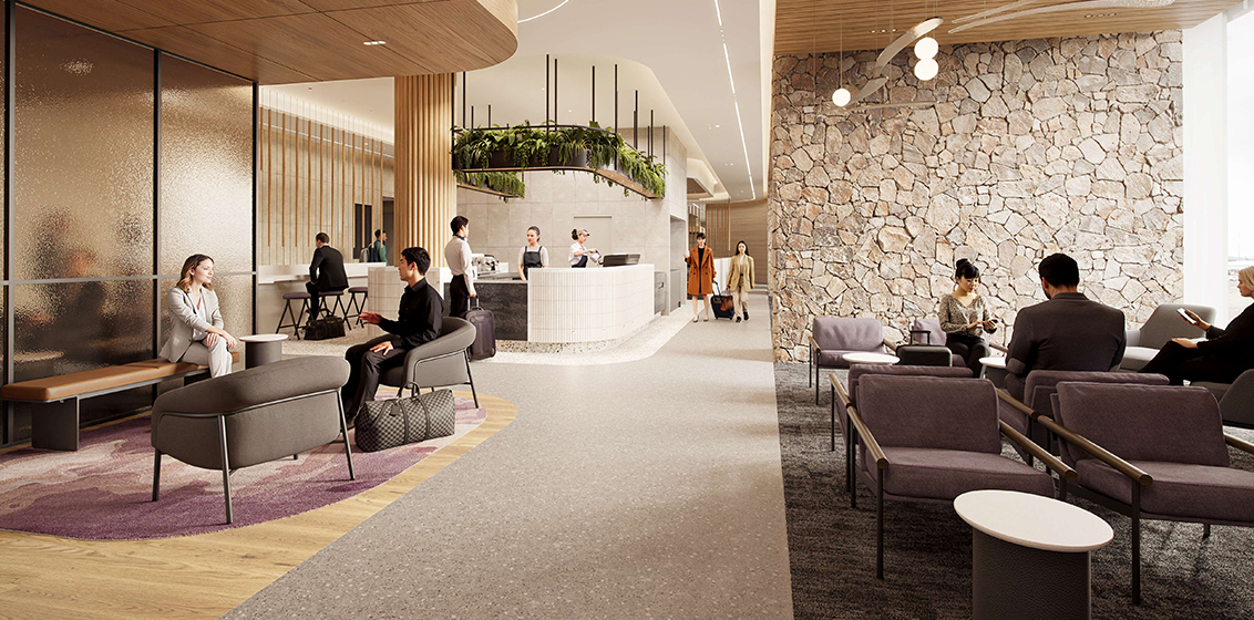 Across the two lounges, total seating capacity will increase by 70 per cent (with the space increasing from 2,000 square meters to 3,700 square meters). In addition, “areas designed to cater to a diverse range of travellers” will be introduced. Some of these areas might include private meetings rooms and single-seating workspace booths, a dedicated family space, and comfortable lounge seating to grab a coffee. Tip: The barista bar will be repositioned closer to the entrance, so those short on time can recharge faster.The new lounge for Elite and Business Premier customers will also offer an expanded food and beverage offering, plus views across the tarmac and runway.New furnishings, art and lighting will be introduced across the lounges, as well.