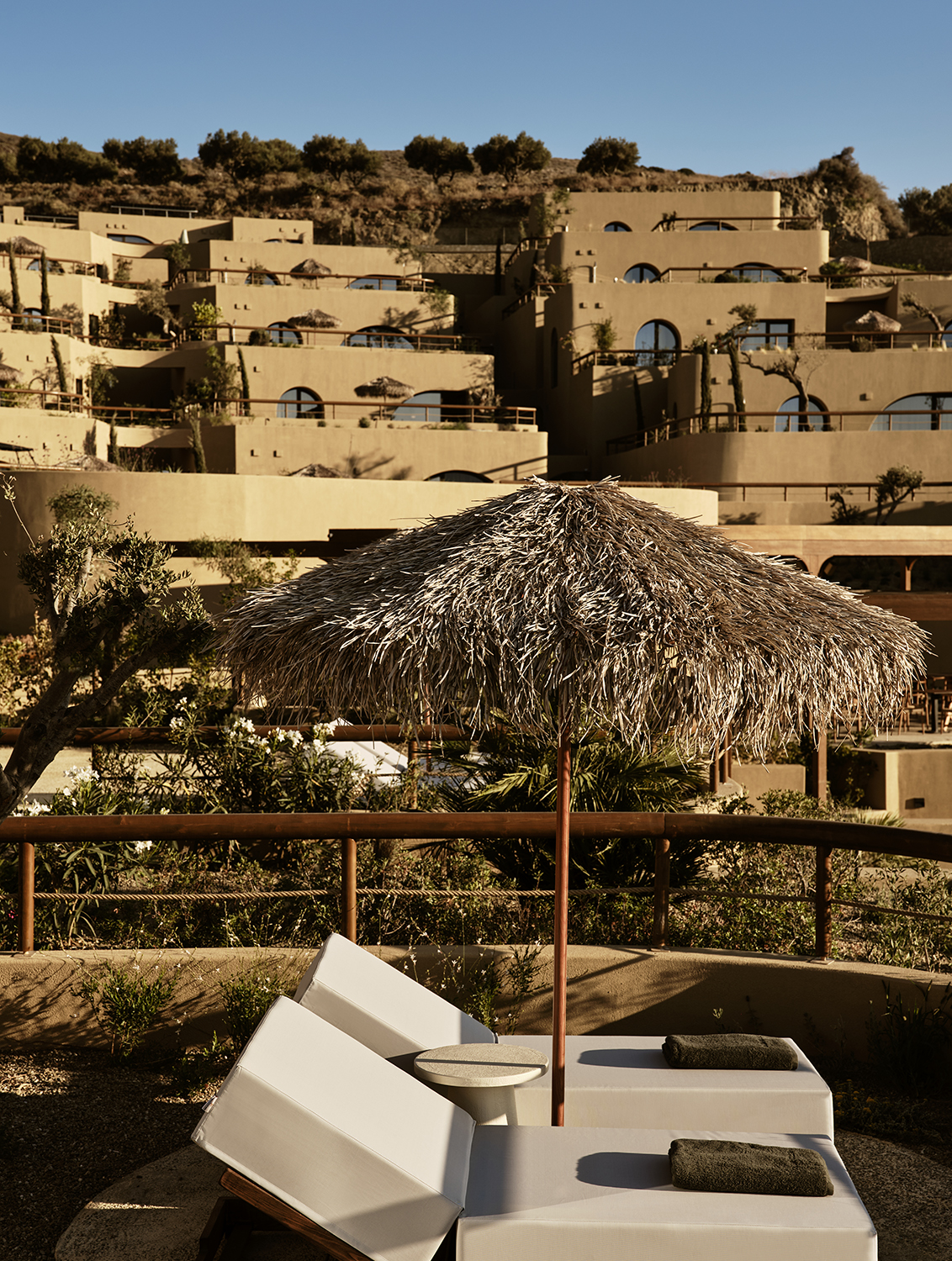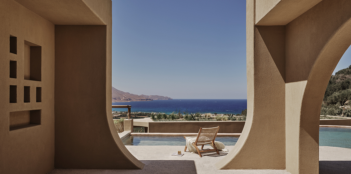 Athens-based design studio Pieris.Architects and landscape architect Karolos Chanikian were tasked with creating an aesthetic where buildings seemingly disappear into the surroundings. In addition, suites utilize biophilic designs that reportedly optimize energy efficiency and carbon absorption.