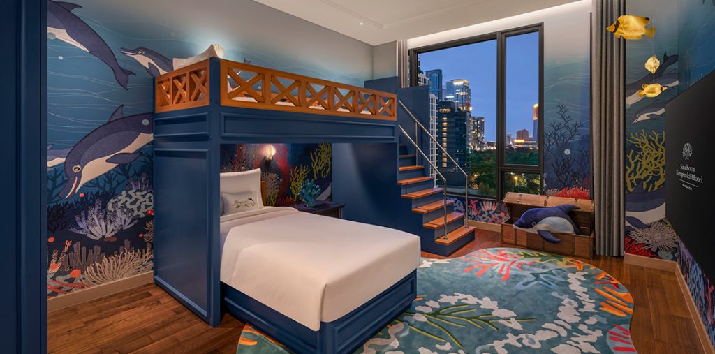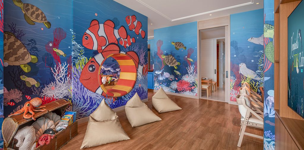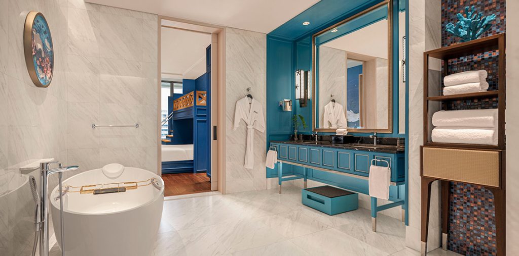 Young guests will delight in their own undersea-inspired play spaces, complete with bunk beds, a treasure chest of toys and games, and souvenir sea sacks filled with surprises like a Kids’ Club passport, colouring book, stickers, and more. Child-friendly amenities such as pint-sized slippers and dental care sets are thoughtfully placed in the dedicated children’s bathroom.