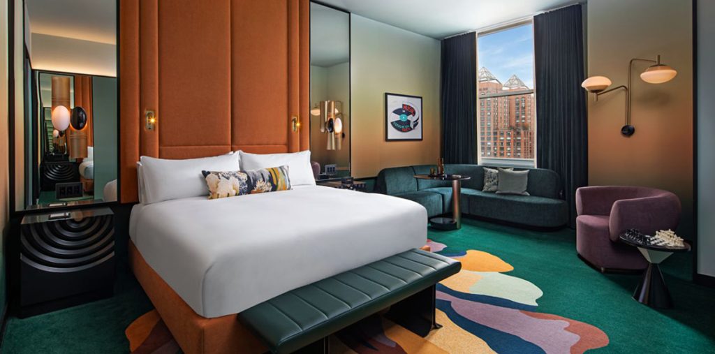 New and coming soon additions include Union Square’s only rooftop bar. Tucked behind the hotel’s iconic marquee sign, the bar offers sweeping skyline views, and a touch of nostalgic glamour, built for golden-hour cocktails and nightcaps.
