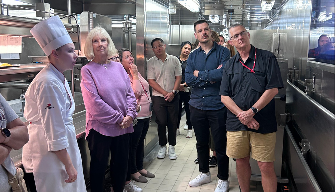 Behind the scenes, the Viking experts also toured Viking Mars’ galley to learn some of the secrets behind the day-to-day preparation of Viking’s acclaimed dishes, and they toured the ship’s bridge meeting, with senior crew behind the operation and navigation of the 47,800 gross tonne ship.