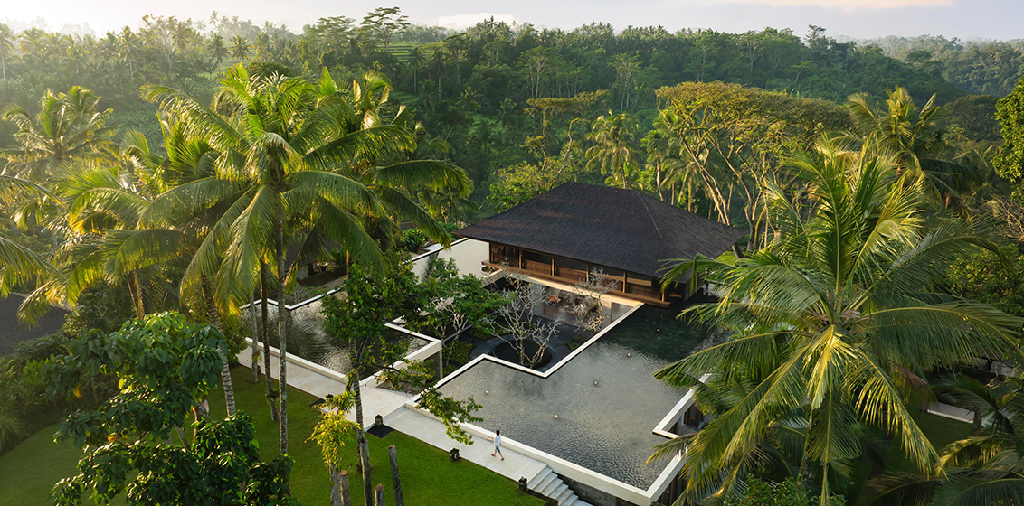 Set within a lush 22-acre sanctuary in Bali, at the convergence of the Ayung and Tibakauh Rivers, the hotel’s location is considered a “symbol of cleansing, purification and renewal in Balinese culture”.