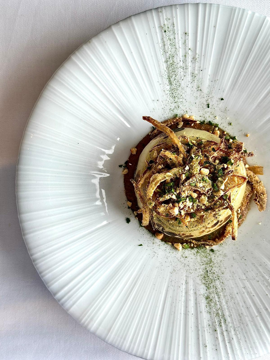 • Roasted White Onion – wild mushroom ragout, hazelnut, parsnip cream