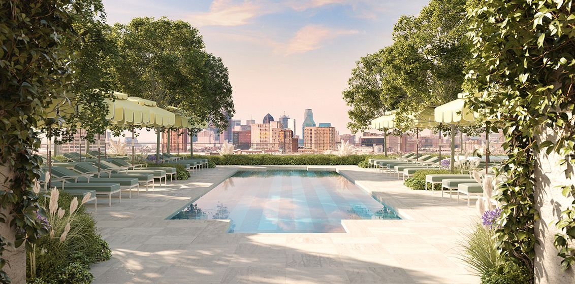 The project will feature 140 hotel rooms and suites, as well as 48 private, world-class luxury residences. Residents will enjoy exclusive access to a private residential club with amenities including a bar and lounge, sunroom, fitness center and indoor pool. Hotel amenities will include a restaurant, a series of spacious living rooms and outdoor lounges, expansive event spaces, a vibrant outdoor pool bar, fitness center, spa and movement studio.