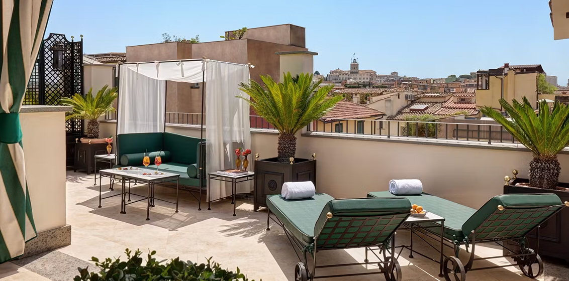 Rooms and suites are uniquely styled like a private residence, blending antique pieces with contemporary craftsmanship. Highlights include Executive Suites, Balcony Suites overlooking Roman rooftops, and the Penthouse Suite with a 70 square-metre terrace framing views from Villa Medici to the Vittoriano. The new SPA Suite, which debuted in July 2025, offers an intimate wellness sanctuary with treatment areas and signature rituals.​