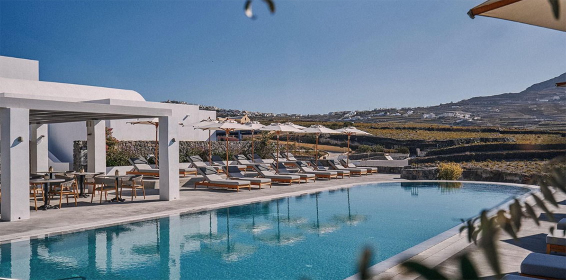 Here are two excellent accommodation choices on Santorini — each offering distinct experiences depending on whether you favour tranquillity among vineyards or cliff-edge drama above the sea.