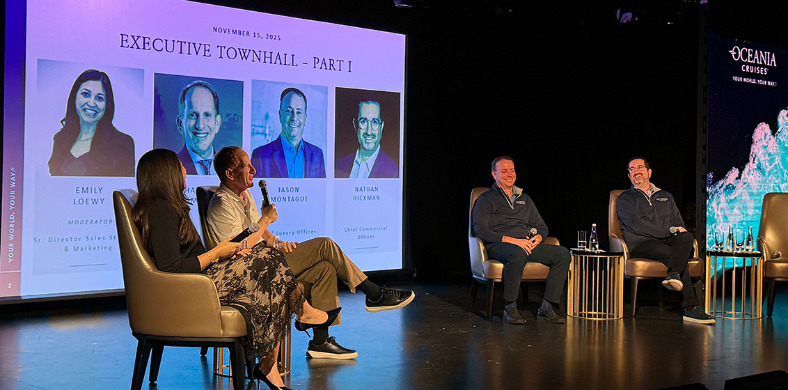 Speaking at a Town Hall aboard Allura, Hickman said the data collected identified that many Oceania Cruises’ guests are “experienced cruisers. A lot of the time they’re stepping up from a contemporary or premium line.”