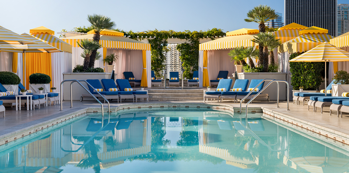 The hotel’s rooftop was enhanced with similar care, introducing new, expanded luxury cabanas and additional lounge chairs to provide guests with the ultimate Beverly Hills poolside experience. Accented with the hotel’s iconic yellow and white stripes, each of the 10 cabanas is outfitted with modern comforts and amenities such as a 50” high-definition television, a Bluetooth sound system to curate the perfect soundtrack, and personalised all-day dining service.