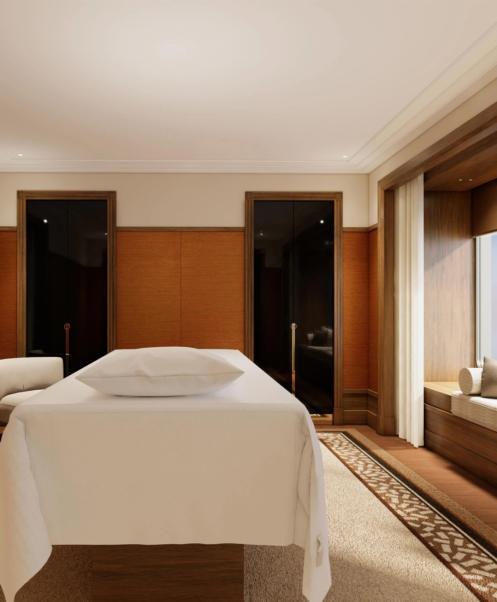 Spread across 500-square-metres, the spa features four treatment suites, including a VIP double suite for couples, alongside a sauna, serene relaxation lounge, a barber studio, a beauty salon, a fitness space, and a lap lane with open-sky views.