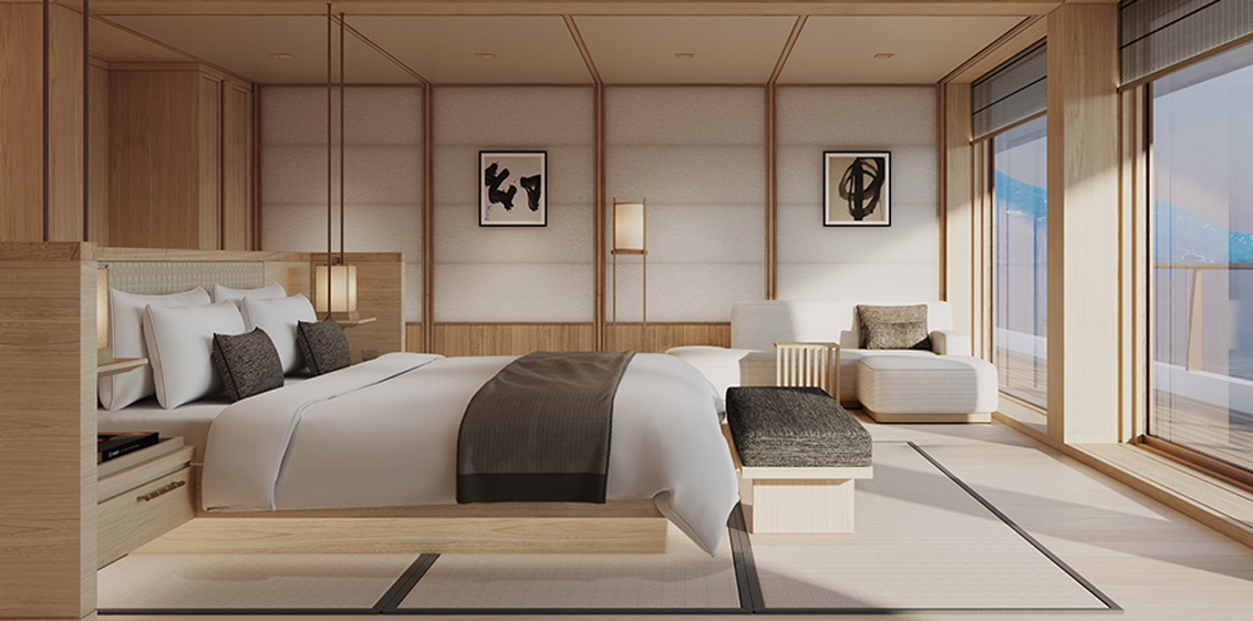 The living spaces are spread over three-decks of the nine-deck ship. Each of the 47-suites has a private terrace with floor-to-ceiling windows. The smallest suite on the yacht is 60-square-metres, with the mainstay measuring 75-sqm. Two Premium Suites are 100-sqm, while the top-of-the-line Aman Suite is 180-sqm, with its 180-sqm private terrace.