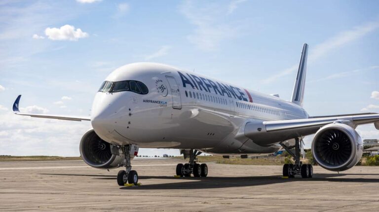 Air France has taken delivery of its first Airbus A350 at the Airbus delivery centre in Toulouse. The aircraft is equipped with 324 seats, with 34 in the Business cabin, 24 in Premium Economy and 266 in Economy.