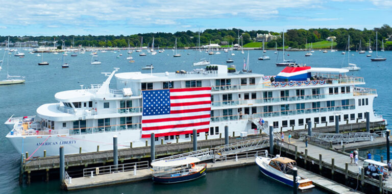 American Cruise Lines christened American Liberty, the third new Coastal Cat in the company’s series of 100-passenger ships, in Newport, Rhode Island this week. The celebration took place at Fort Adams State Park, where all American’s small ships dock when visiting Newport.