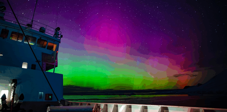 Passengers aboard Oceanwide Expeditions’ Antarctica – Beyond the Polar Circle – Wilkins Ice Shelf – Aurora Australis voyage were treated to an extraordinary sight on the night of 25-26 March 2025, when the Aurora Australis, or Southern Lights, lit up the Antarctic sky in a breathtaking display.