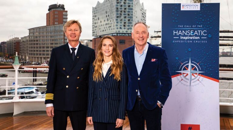 Hapag-Lloyd Cruises’ newest expedition ship, HANSEATIC inspiration, was christened by godmother Laura Dekker on the Elbe River in Hamburg, Germany on Friday [11 October, 2019] night. Around 230 guests were on hand to watch the naming ceremony of the second of three new luxury expedition ships that have joined the Hapag-Lloyd Cruises’ fleet, backed by TUI Group.