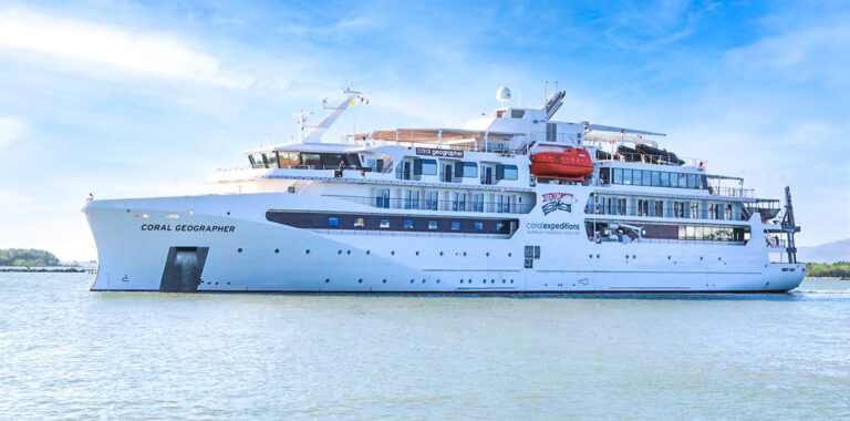 Coral Expeditions has welcomed a second new ship to its fleet in two years, with the arrival of Coral Geographer to the Australian cruise line’s headquarters in Cairns on Friday 12 March 2021.