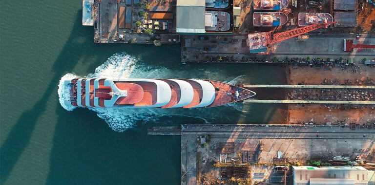 The new ocean-going super yacht Emerald Azzurra from Emerald Cruises was floated out for the first time last weekend at The Halong Shipbuilding Company in Vietnam, marking just over a year until guests will be able to set sail on the upmarket vessel.