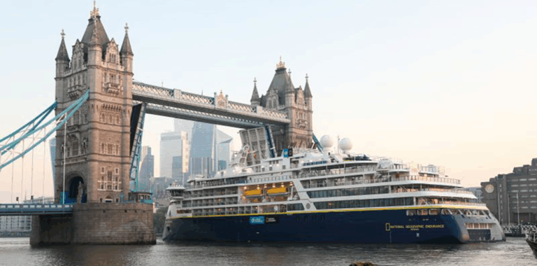 National Geographic Endurance made an extraordinary debut in London last week, with the vessel passing the city’s iconic Tower Bridge before docking in the heart of the city beside the HMS Belfast.