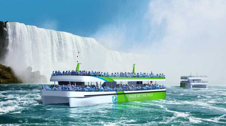 Visitors to Niagara Falls will soon be able to explore the attraction in a sustainable way onboard all-electric catamaran-style vessels. Maid of the Mist is set to introduce the first zero-emission passenger sightseeing boats later this year which will provide visitors with a smooth and quiet means to explore the power of Niagara Falls.