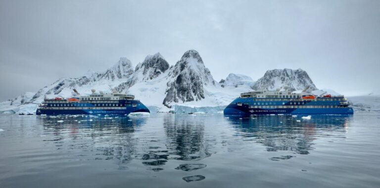 Polar expedition specialist, Albatros Expeditions, achieved a historic milestone with both of its cutting-edge vessels, Ocean Victory and the Ocean Albatros, meeting for the first time at 65.067°S 64.027°W in the fabeld Lemaire Channel in Antarctica on the morning of 11 December.