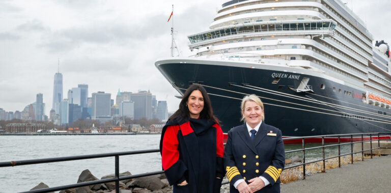 Cunard’s Queen Anne marked her North American debut as she arrived in New York on her maiden call from Southampton, England last Friday.